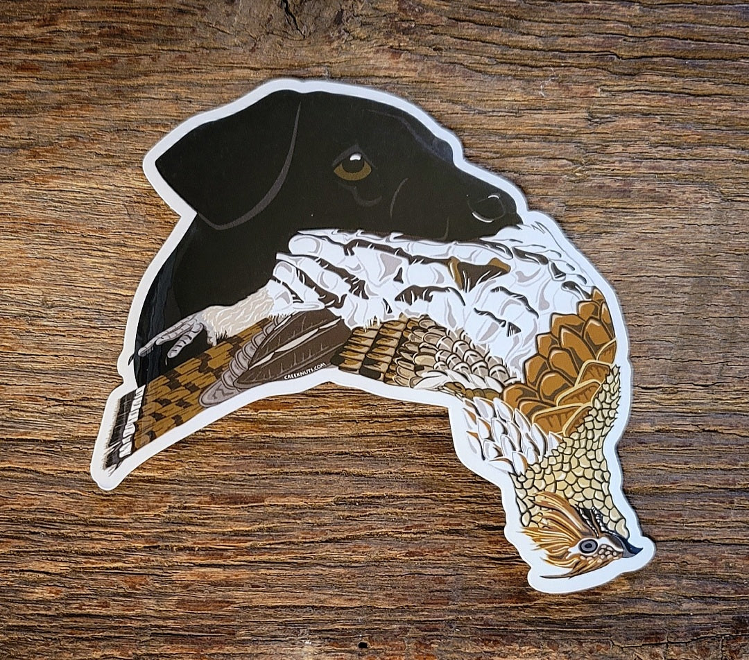 Black Labrador Retriever with Ruffed Grouse Sticker