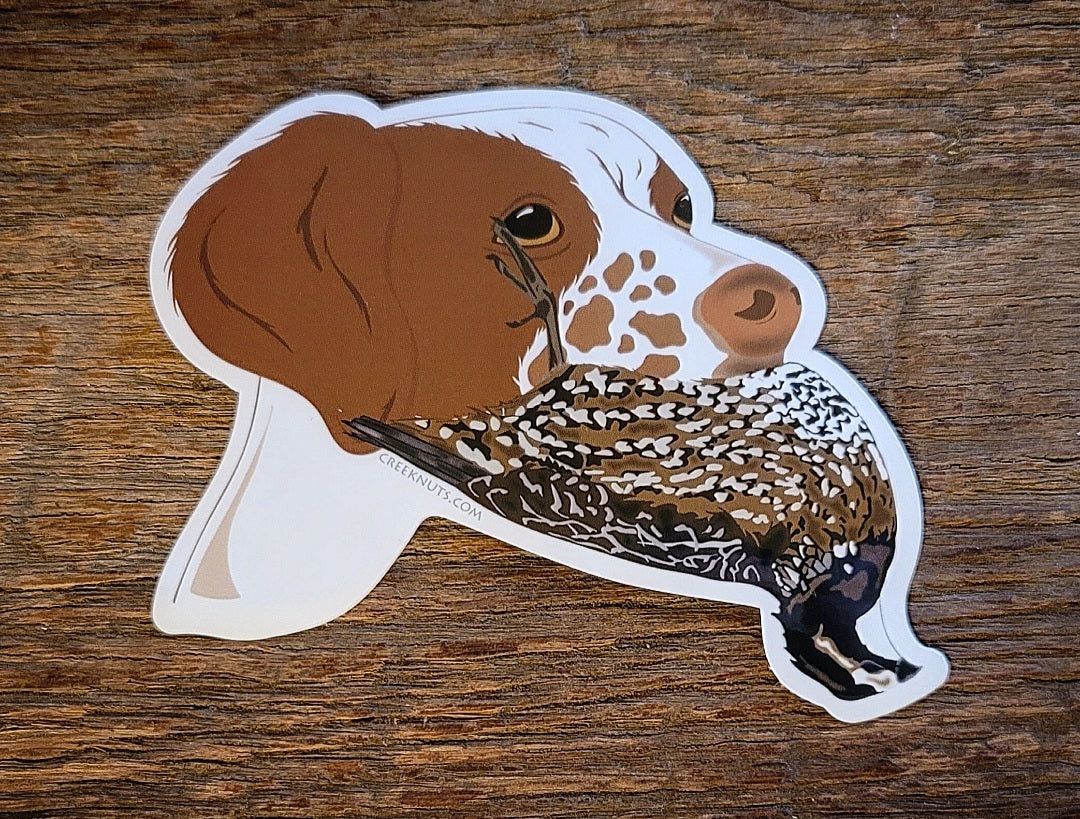 Brittany Spaniel with Quail Sticker