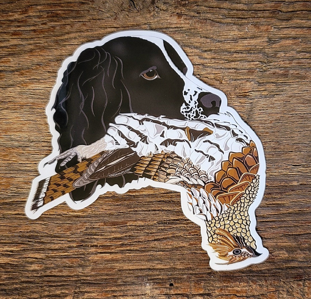 Black Springer Spaniel with Ruffed Grouse Sticker